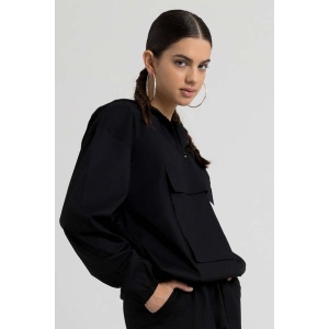 Μπλουζα Με Μεγαλη Τσεπη Εμπρός- Μαύρη