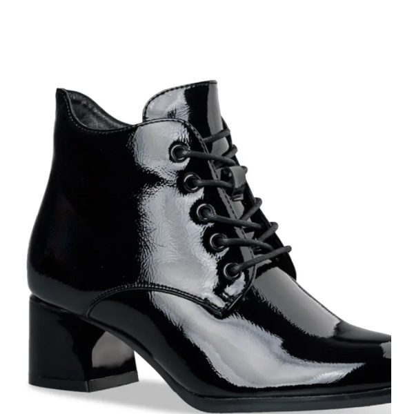 Γυναικεία μποτάκια με χοντρό τακούνι της εταιρίας Envie Shoes. Είναι κατασκευασμένα από λουστρίνι με γυαλιστερό φινίρισμα και καθαρίζονται εύκολα. Διαθέτουν κορδόνια για να προσαρμόζονται κατάλληλα στο πόδι.