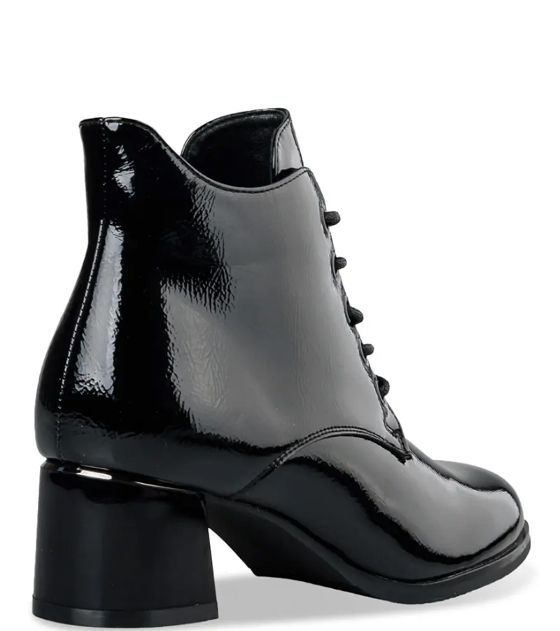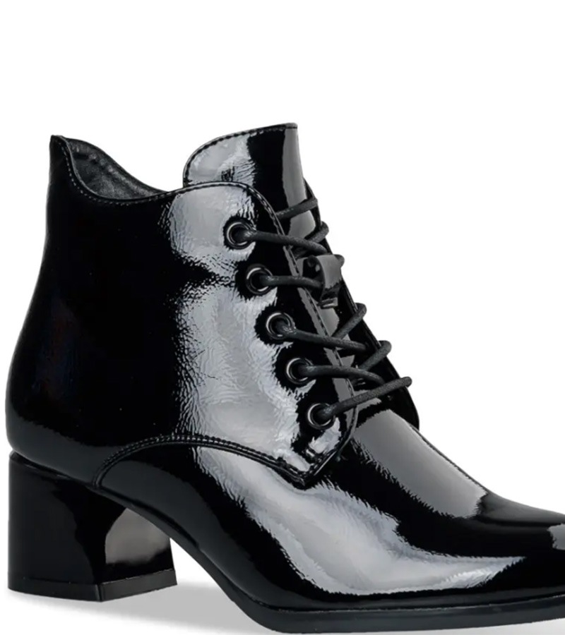 Γυναικεία μποτάκια με χοντρό τακούνι της εταιρίας Envie Shoes. Είναι κατασκευασμένα από λουστρίνι με γυαλιστερό φινίρισμα και καθαρίζονται εύκολα. Διαθέτουν κορδόνια για να προσαρμόζονται κατάλληλα στο πόδι.