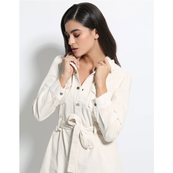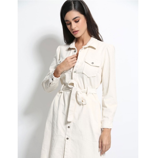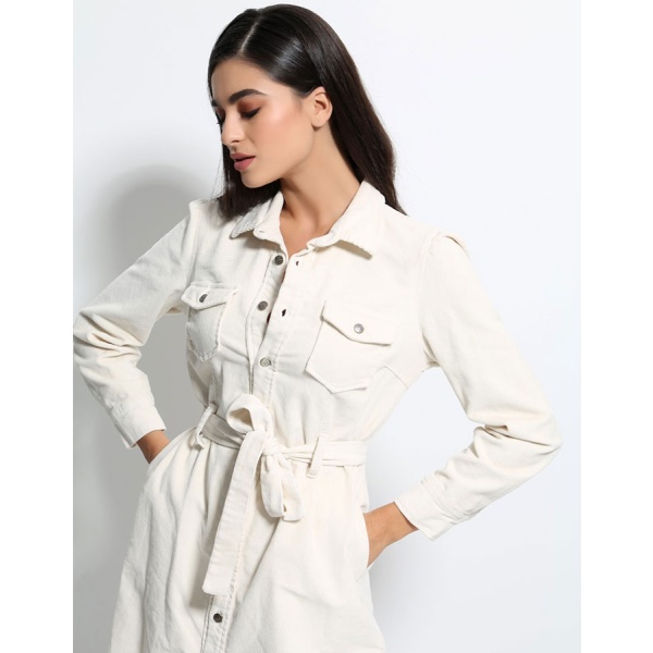 Φόρεμα κοτλέ midi με ζώνη και κουμπιά.