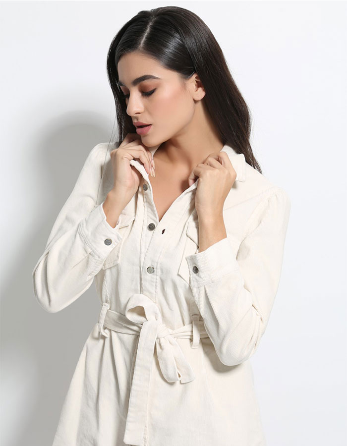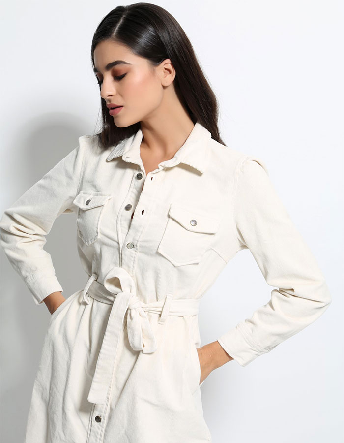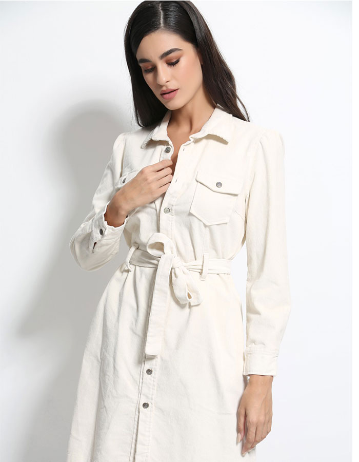 Φόρεμα κοτλέ midi με ζώνη και κουμπιά.