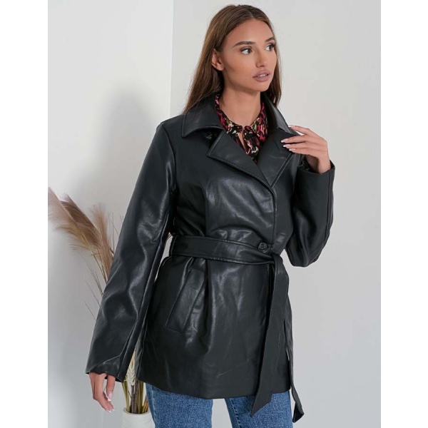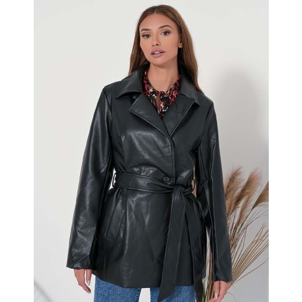 Γυναικείο ημίπαλτο με δερμάτινη όψη της εταιρείας Fullah Sugah σε μαύρο χρώμα. Χαρίζει διαχρονικό στυλ και μπορεί με ευκολία να φορεθεί κάθε ώρα της ημέρας.