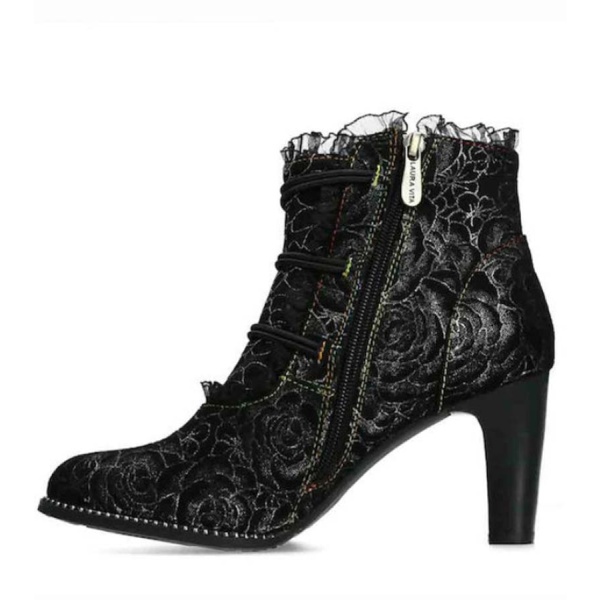 Laura Vita Δερμάτινα Γυναικεία Μποτάκια με Ψηλό Τακούνι Μαύρα