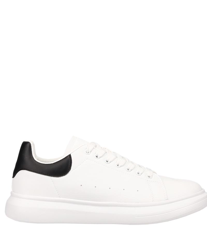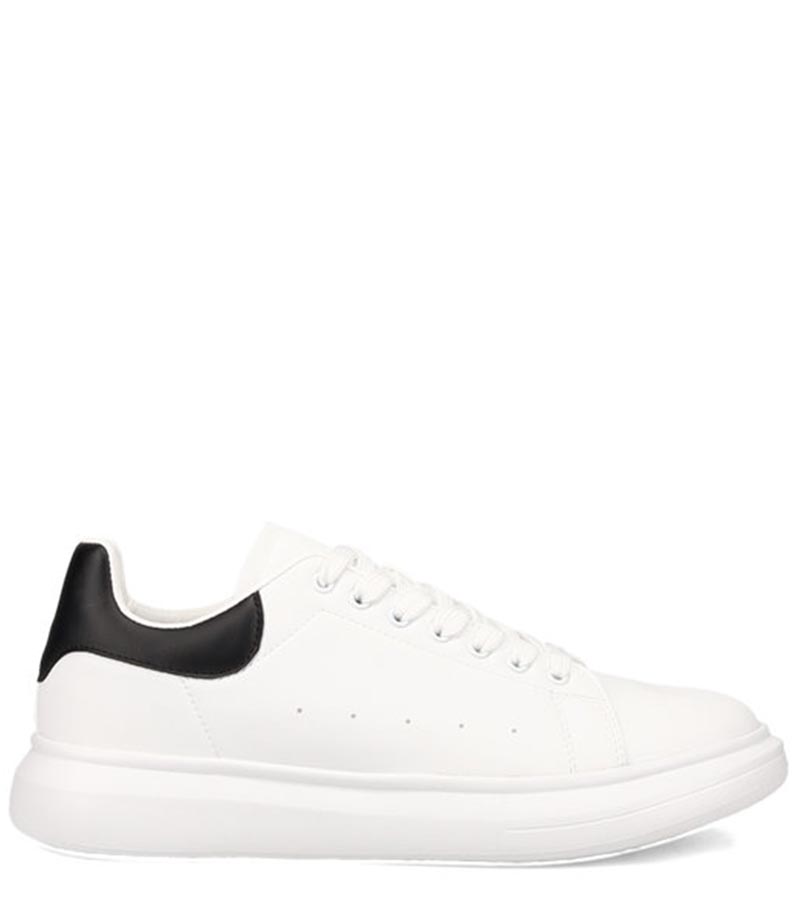 Migato ανδρικό sneaker σε λευκό με μαύρο χρώμα κατασκευασμένο από οικολογικό δέρμα. Ύψος σόλας 1εκ.