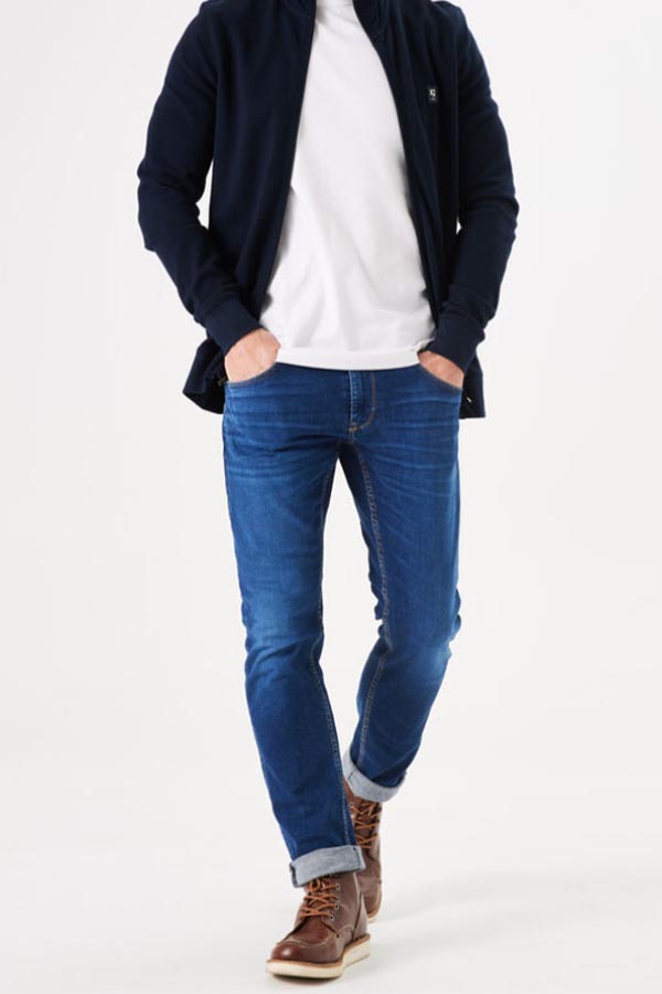 Το Russo 611 είναι ένα τζιν με κωνική εφαρμογή και κανονική μέση. Σε μια κωνική εφαρμογή, τα πόδια στενεύουν από το γόνατο μέχρι τον αστράγαλο. Αυτό το τζιν με 5 τσέπες κλείνει με φερμουάρ και κουμπί.