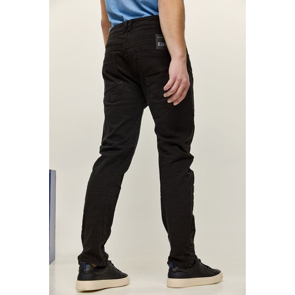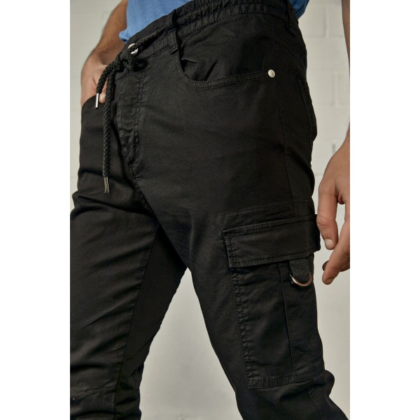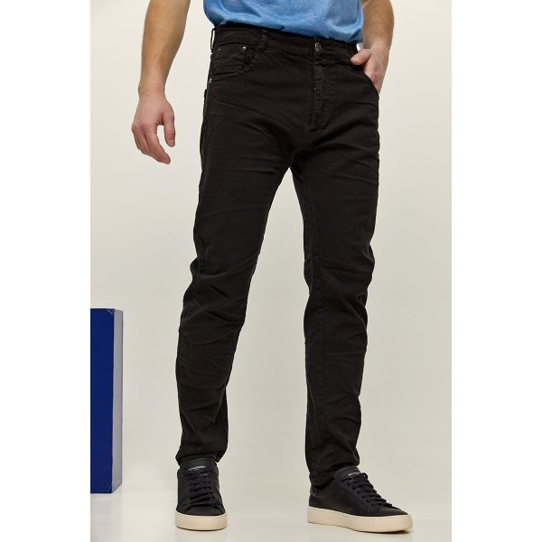 Παντελόνι σε carrot γραμμή με 5 τσέπες. Λεπτομέρεια με εξωτερικά γαζιά στο μέσα μέρος απο το μπατζάκι. Μήκος cropped. Κλείσιμο μπροστά με μεταλλικά κουμπιά.