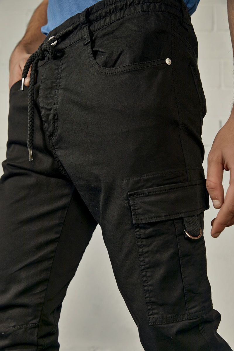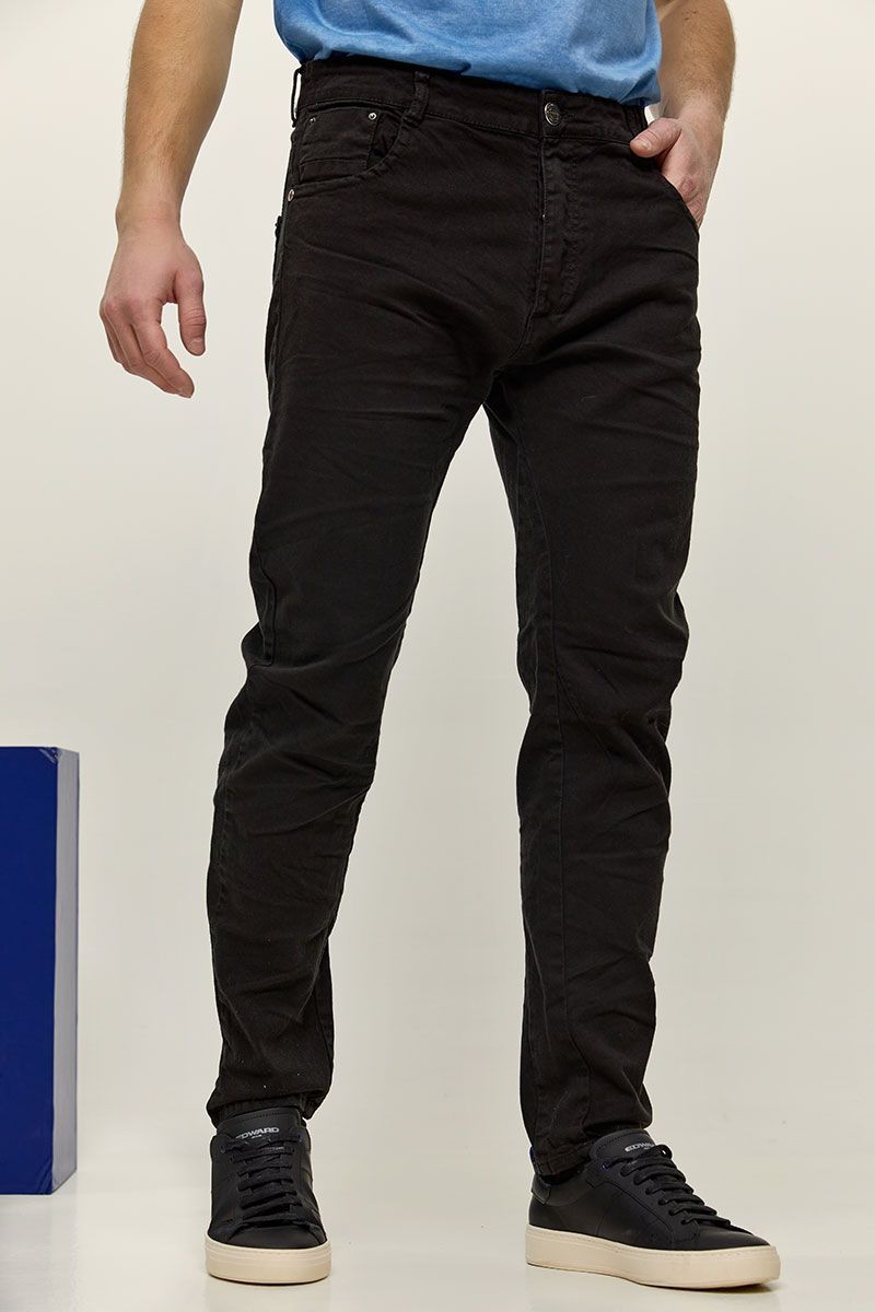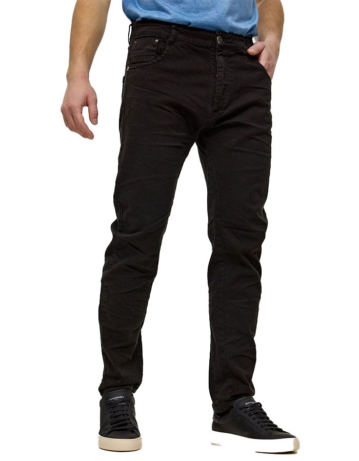 Παντελόνι σε carrot γραμμή με 5 τσέπες. Λεπτομέρεια με εξωτερικά γαζιά στο μέσα μέρος απο το μπατζάκι. Μήκος cropped. Κλείσιμο μπροστά με μεταλλικά κουμπιά.