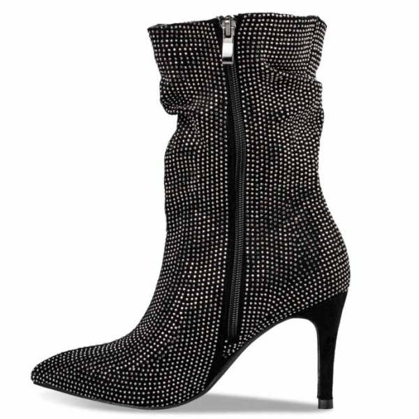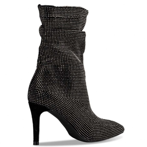 Envie μπότες 3/4 με σούρες με στρας και τακούνι στιλέτο