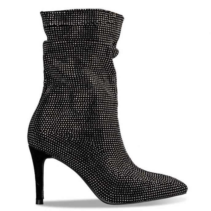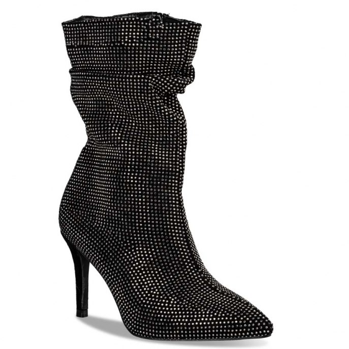Envie μπότες 3/4 με σούρες με στρας και τακούνι στιλέτο