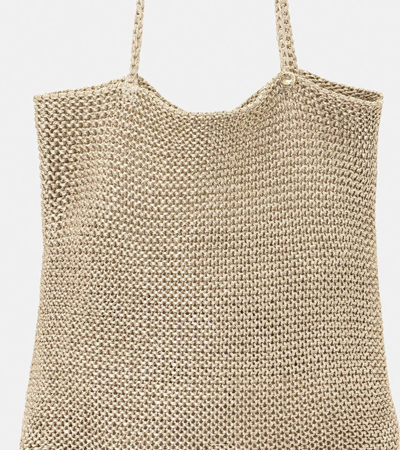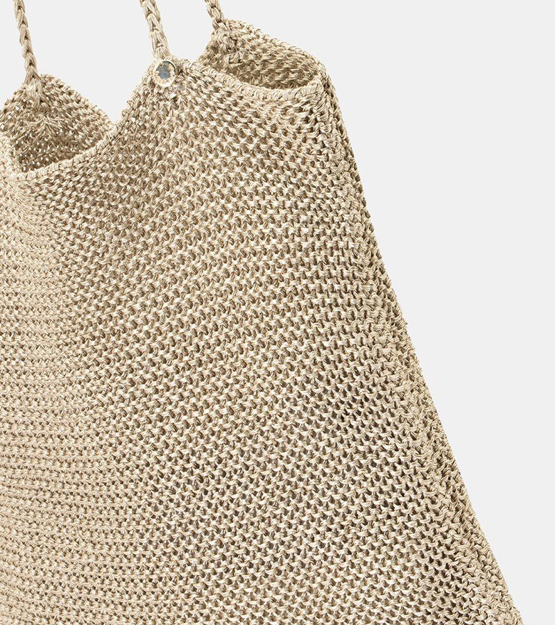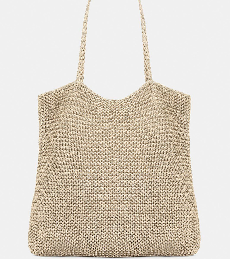 Τσάντα shopper μεταλιζέ με δικτυωτή πλέξη. Πλεκτοί ιμάντες για εφαρμογή στον ώμο. Ενιαίος αποθηκευτικός χώρος χωρίς φόδρα. ΠΧΥ : 37X33. Σύνθεση : 100% POLYESTER